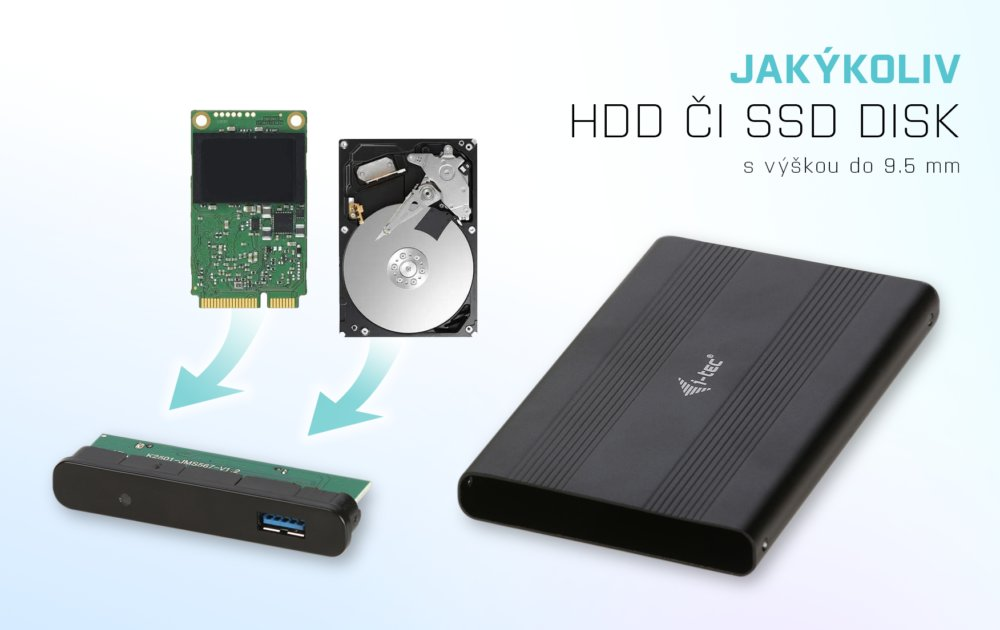 Externí rámeček pro všechny 2.5" SATA I/II/III HDD nebo SSD disky s výškou až 9,5 mm. Připojení přes USB 3.0 nabízí rychlý a snadný přenos dat s rychlostí až 5 Gbps. Pevná hliníková konstrukce zajišťuje optimální odvod tepla a ochranu disku. Rámeček je dodáván s USB kabelem.