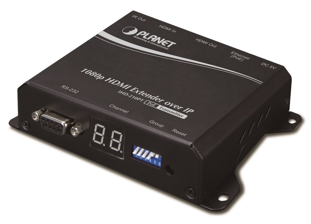 Vysílač distribuce pro extender přes síť LAN (ethernet), podpora rozlišení Full HD, komprese H.264. Přenos 64 nezávislých kanálů. Podpora identifikace EDID a ochrany HDCP. Spojení bod-bod nebo multicast. Správa utilitou, IR vysílač pro ovládání, VESA montáž, napájení PoE nebo adaptérem.