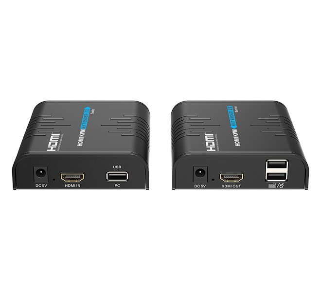 Pár jednotek vysílač a přijímač, které dovolují přenos HDMI videa a USB po IP sítích. Typicky je určen pro KVM aplikace, tj. vzdálené ovládání počítačů. Výhodou je, že má prakticky neomezený dosah, podmínkou je jen LAN síť. Doporučujeme jej tedy tam, kde již vzdálenost nedovoluje užití nekomprimovaných přenosů HDMI po Cat5 kabelážích. Přenos je prováděn pomocí IP protokolu, video v UDP multicastu, obousměrná USB komunikace v UDP unicastu.
