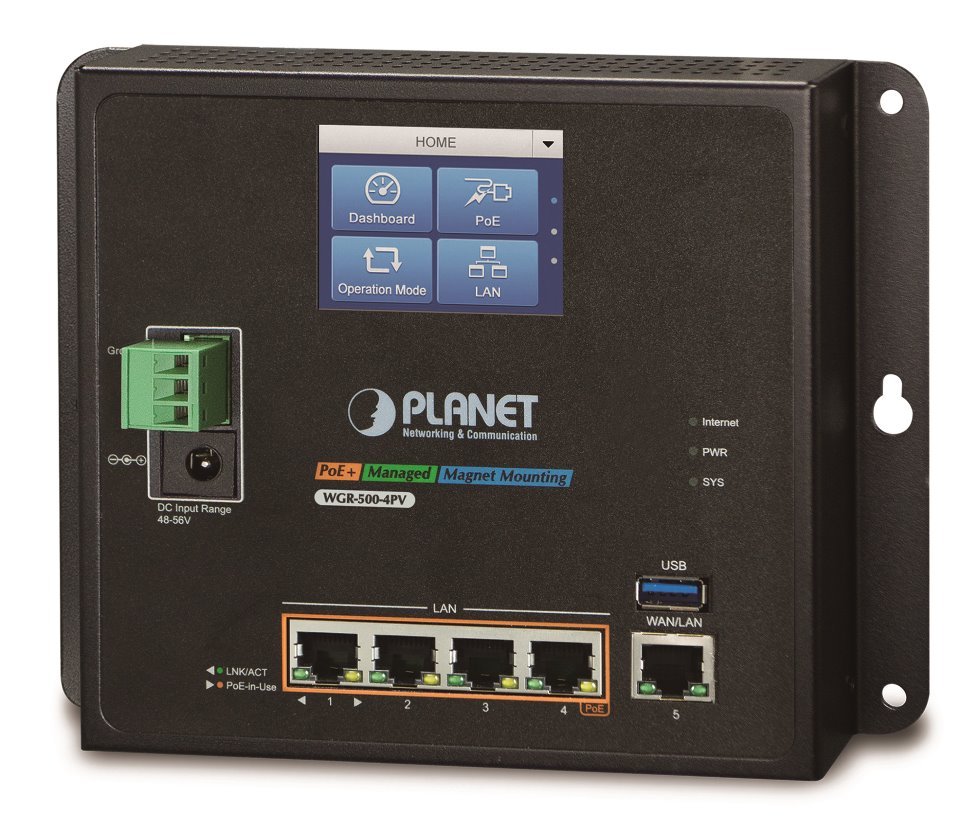 Gigabitový směrovač s 2,4" dotykovým displejem pro usnadnění správy. Disponuje 4x LAN 1000Base-T a 1x WAN 1000Base-T porty, z toho 4x PoE injektor 802.3at s celkovým výkon až 120 W.