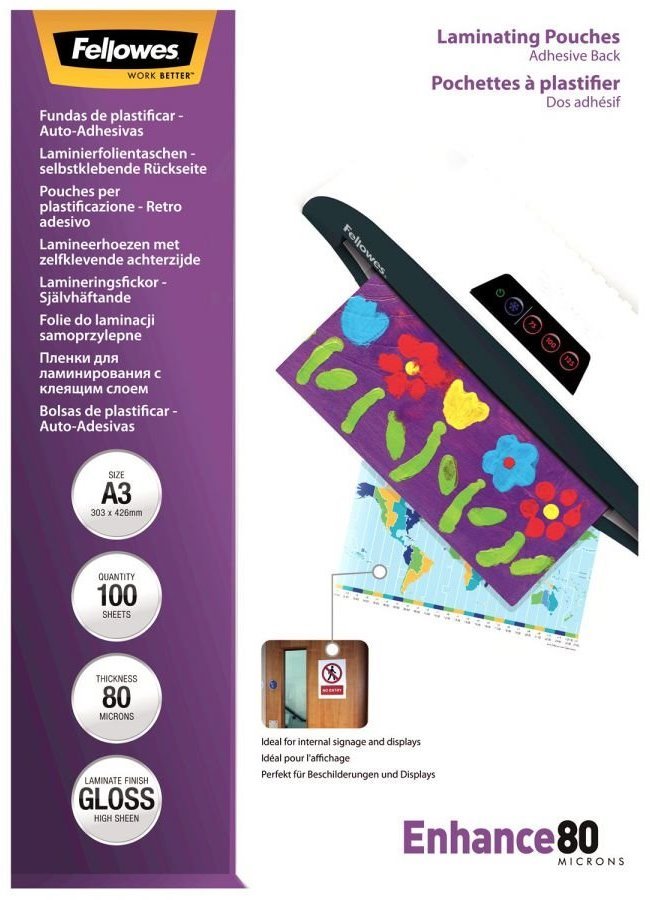 Fólie Enhance80 je v nezalaminovaném stavu z jedné strany podlepena papírovým nosičem, který kryje při běžné pokojové teplotě lepivou stranu. Po projetí fólie laminátorem za tepla se tento papírový nosič ručně oddělí. Vznikne tak „samolepka“ a zalaminovaný dokument lze nalepit na libovolnou hladkou plochu.