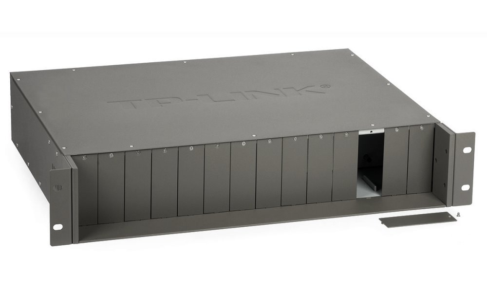 14slotové rackové šasi TL-MC1400 je speciálně určeno pro usazení 14 média konvertorů TP-LINK při zajištění centrálního napájení, úspory místa a napájecích kabelů.
