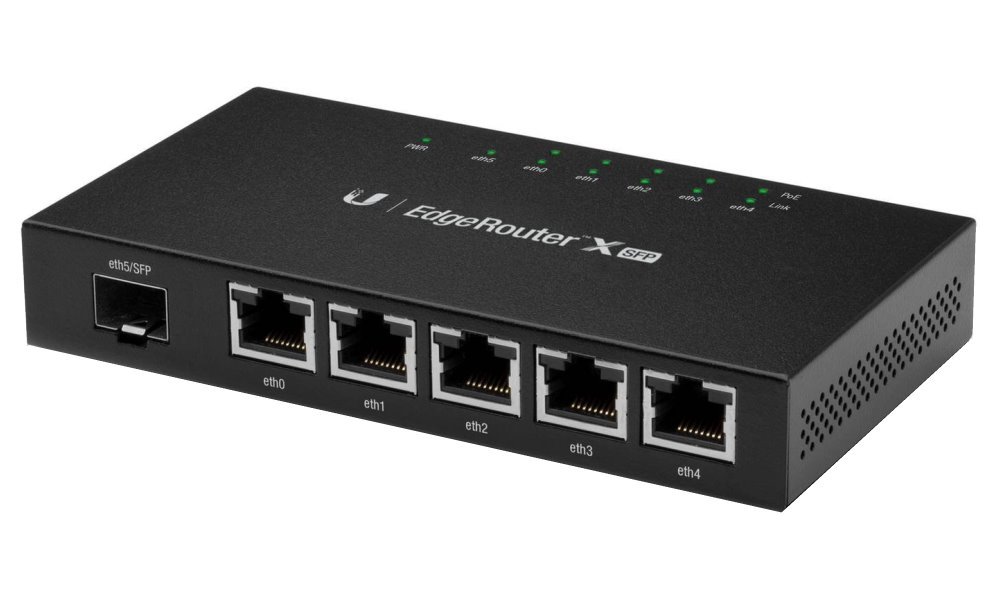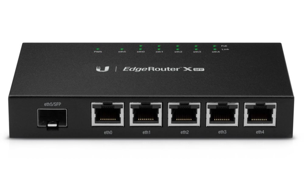 EdgeRouter X SFP má 5 portů, které podporují pasivní napájení PoE 24 V na výstupu. Maximální výkon PoE na výstupu je 12 W na port (celkově 50 W). PoE se aktivuje softwarově.