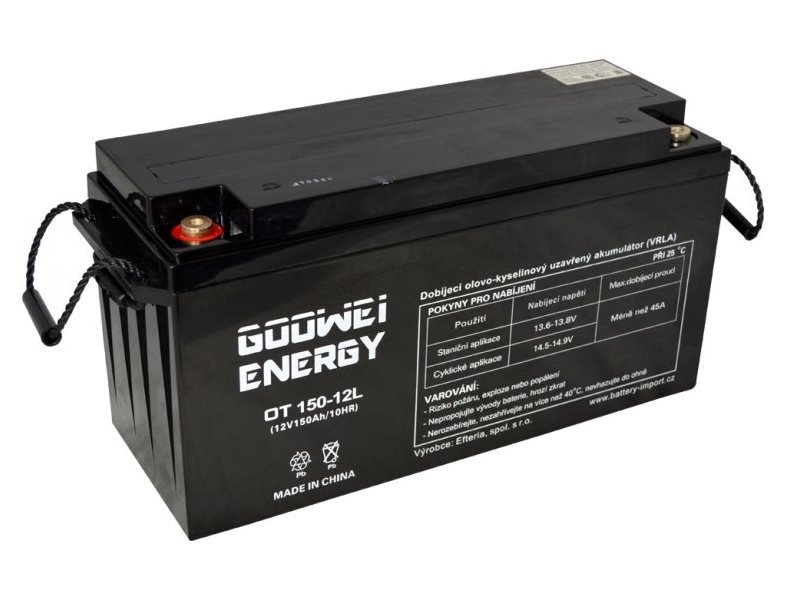 Olověný 12 V (150 Ah) akumulátor v provedení VRLA GEL navržený pro hluboké vybíjení i cyklické namáhání. Je tak vhodný pro záložní systémy.