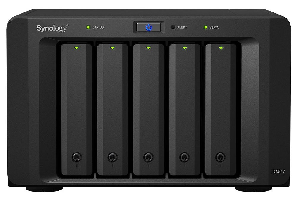 Síťové úložiště NAS nabízející jednoduché řešení pro rozšíření svazku a zálohování dat pro vybraná zařízení Synology DiskStation. DX517 může bezproblémově a během provozu rozšířit kapacitu zařízení DiskStation o dalších pět pevných disků formátu 2,5" i 3,5" SATA. Průběžné rozšiřování svazku zaručuje, že se provoz úložiště ani služby na hostiteli v průběhu rozšíření svazku nepřeruší.