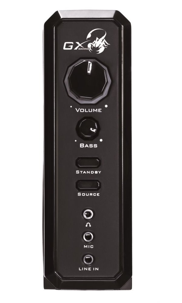 Designové herní reproduktory v konfiguraci 2.1 disponují celkovým výkonem 45 W. Díky přítomnému zesilovači nabízí samostatné ovládání hlasitosti a basů, můžete si tak sami zvolit, na jakou úroveň dunivého zvuku máte akorát náladu. Na předním panelu se nachází také sluchátkový výstup a vstup pro mikrofon. Na zadní straně jsou poté k dispozici konektory pro připojení k počítači, televizoru či DVD přehrávači. Herní design doplňuje modré podsvícení a logo škorpióna na subwooferu.