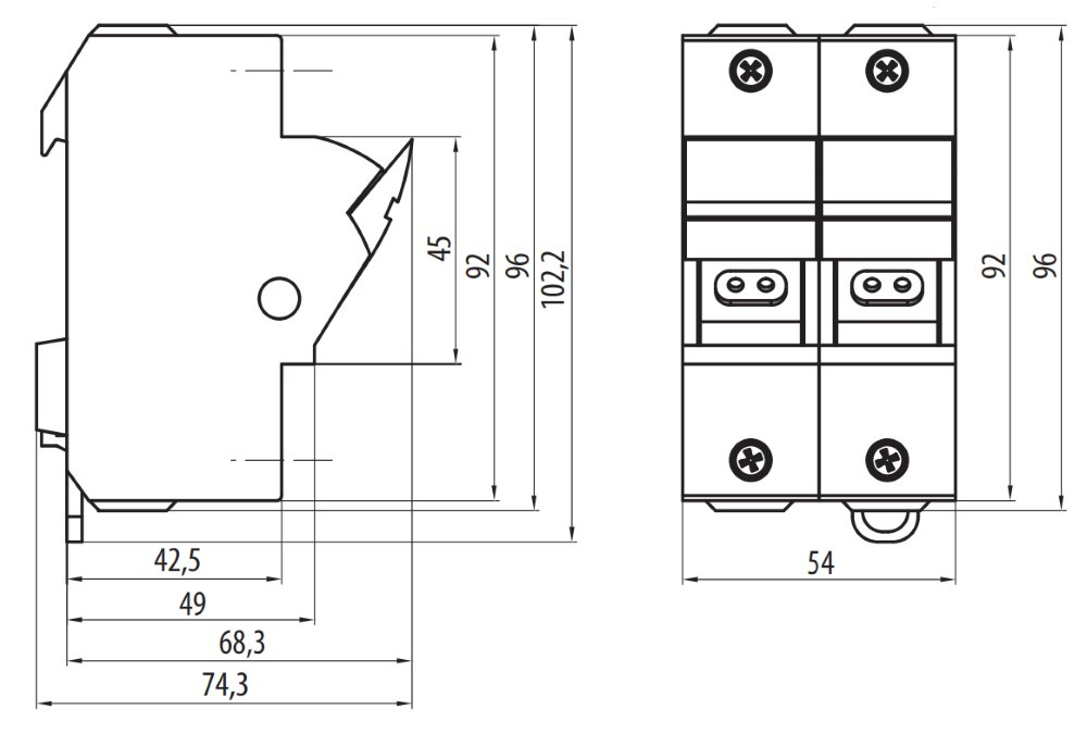 Pojistkový odpínač a zároveň pojistkový držák, který je určený pro dvě válcové pojistky (jištění polovodičů) velikosti 14 x 51 mm typu PV514 a pro dvě výkonové pojistkové vložky PV14 do 63 A (gG, aM).