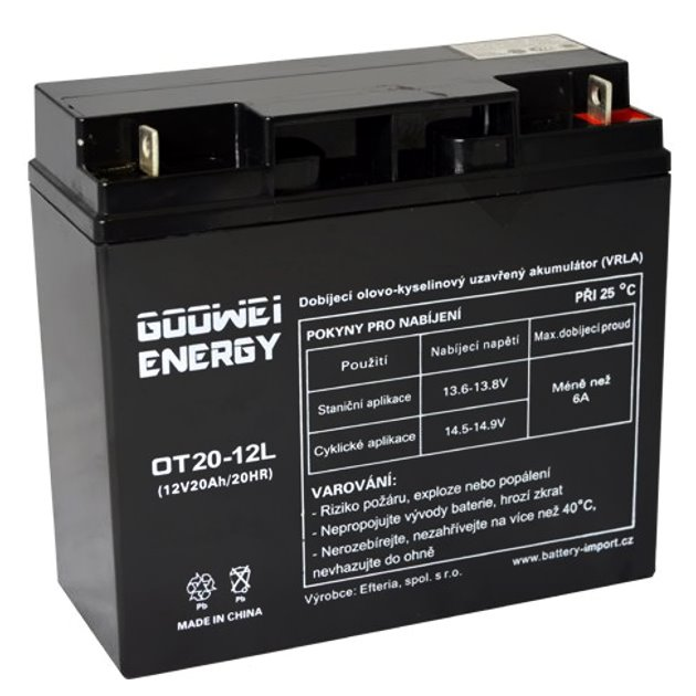 UPSGOE0007 - Olověný 12V, 20Ah akumulátor v provedení VRLA GEL navržený pro hluboké vybíjení i cyklické namáhání
