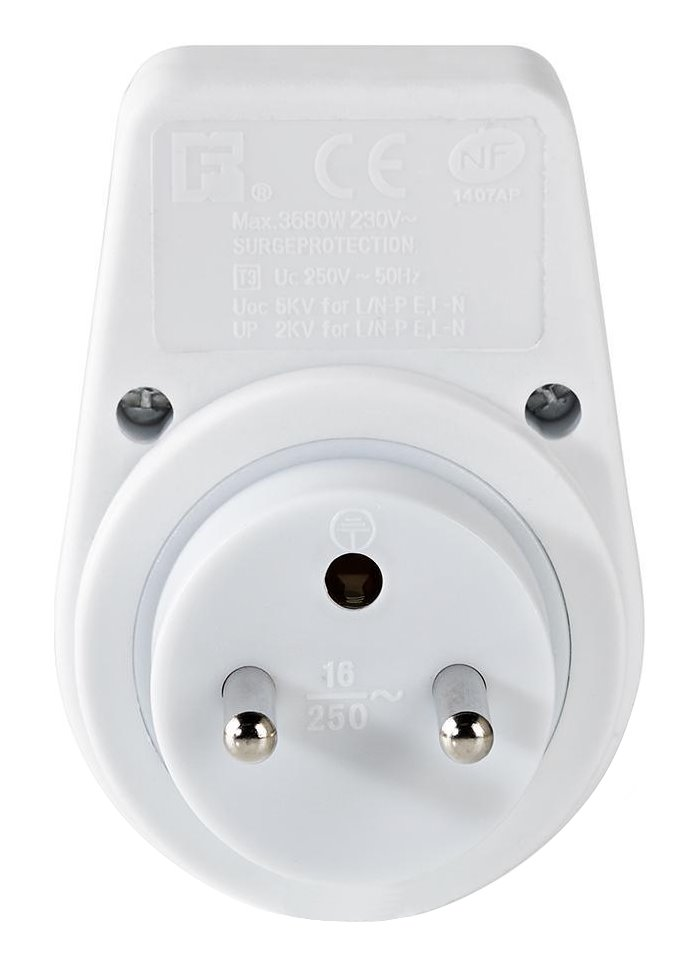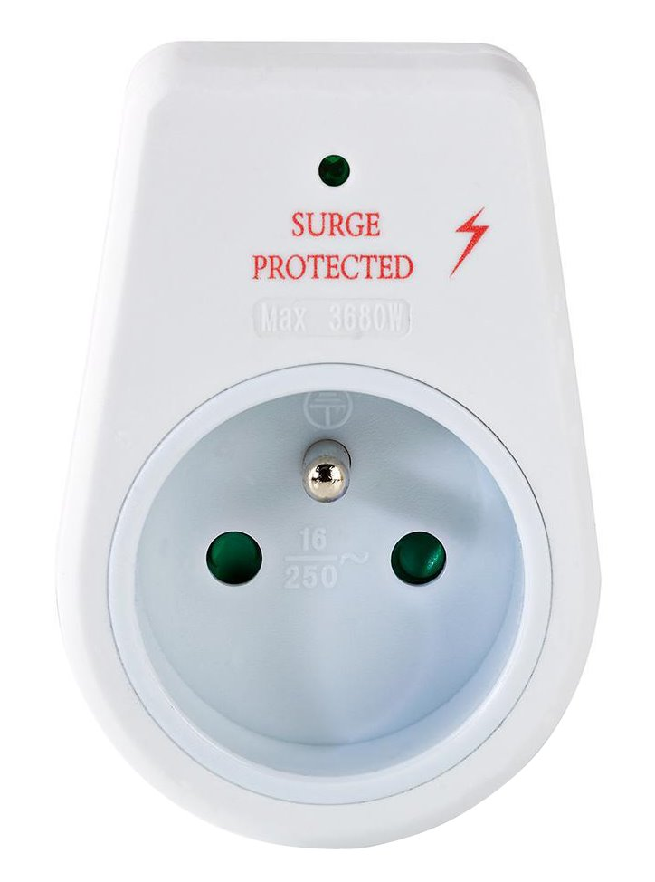 Přepěťová ochrana s bezpečnostními dětskými záslepkami k ochraně elektrických zařízení před poškozením proudovou špičkou.