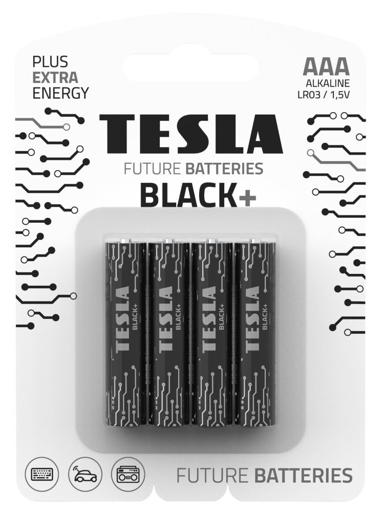 Alkalické baterie formátu AAA s napětím 1,5 V. Řada BLACK+ zahrnuje alkalické baterie určené pro zařízení s nižší potřebou proudu. Jsou tak ideálním řešením pro zařízení jako jsou klávesnice, počítačové myši a ovladače. V jednom balení jsou 4 kusy baterií.