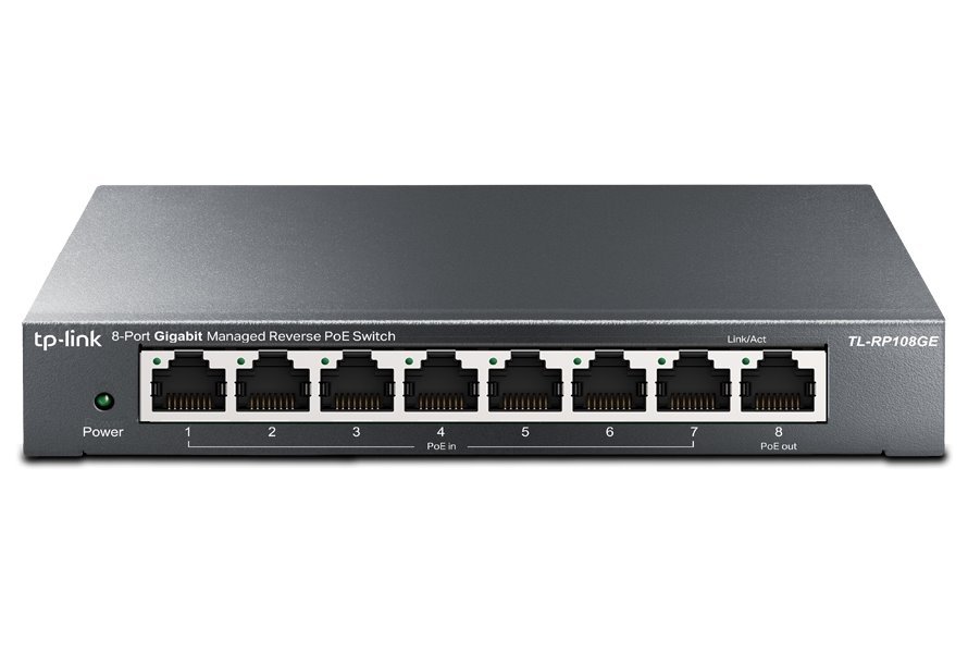 Reverzní spravovatelný gigabitový PoE switch v kompaktním kovovém těle. Nabízí osm GbE RJ-45 portů, z toho sedm s funkcí PoE-in a jeden s funkcí PoE-out. Reversní PoE Switch velmi usnadňuje napájení při instalaci v chodbách a zároveň poskytuje širokopásmový přístup pro běžnou domácnost nebo například malý podnik, který má v budově již vedené kabely.