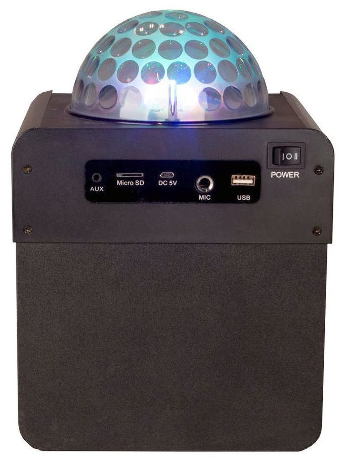 Přenosný reproduktor s výkonem 50 W zajistí dostatečné ozvučení vaší párty. Hudbu lze přehrávat jak drátově skrze AUX vstup, tak i bezdrátově pomocí technologie Bluetooth. Pro rychlé přehrávání z paměťových médií je přítomen USB port a čtečka micro SD karet. Pokud si párty chcete opravdu užít, můžete využít také vstup pro mikrofon. V případě, že není k dispozici elektrická zásuvka, zajistí provoz integrovaná baterie s výdrží až 6 hodin. Napájení je realizováno skrze micro USB konektor.