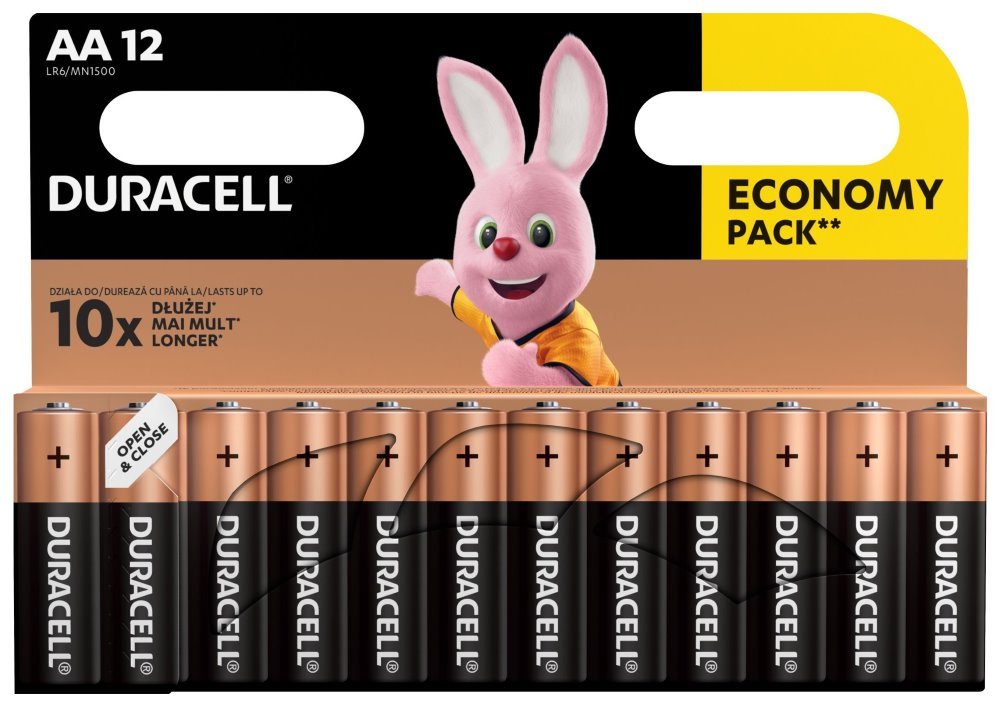 Baterie Duracell Basic jsou víceúčelové alkalické baterie vhodné pro běžné přístroje. Dokonalé uzavření horní části nylonem pomáhá předcházet vytečení baterií. Technologie Duralock udržuje nepoužívané baterie Duracell při běžném skladování jako nové a nabité po dobu až 10 let. Balení obsahuje 12 kusů baterií.