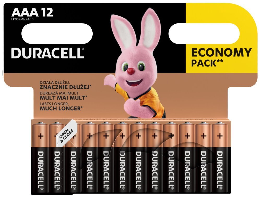 Baterie Duracell Basic jsou víceúčelové alkalické baterie vhodné pro běžné přístroje. Dokonalé uzavření horní části nylonem pomáhá předcházet vytečení baterií. Technologie Duralock udržuje nepoužívané baterie Duracell při běžném skladování jako nové a nabité po dobu až 10 let. Balení obsahuje 12 kusů baterií.