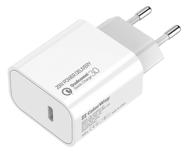 Síťový adaptér s výstupem USB typu C, podporou Quick Charge 3.0 a výstupním výkonem 20 W.