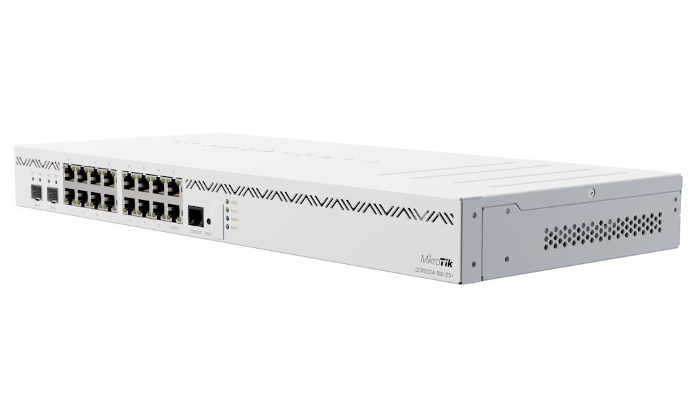 Cloud Core Router MikroTik CCR2004-16G-2S+ se 4 GB paměti RAM s bezkonkurenčním výkonem, který poskytuje 4jádrový 64bitový ARM procesor AL32400 na frekvenci 1,7 GHz. Router má šestnáct GbE portů a dva 10G SFP+ sloty. Každý přepínací čip routeru má plně duplexní 10 Gb/s linku k procesoru, a díky tomu má nejlepší jednojádrový výkon v sérii CCR routerů. Další předností je duální redundantní napájení pro bezproblémový a stabilní provoz.