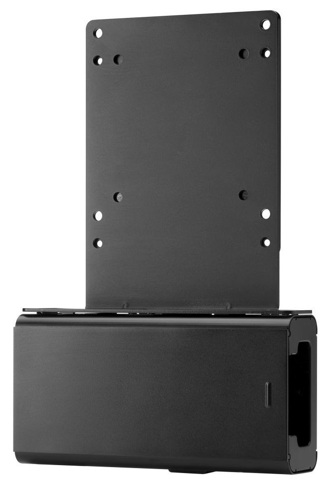 Montážní držák s držákem napájecího zdroje vám zajistí dostatek prostoru díky snadnému řešení s minimálními rozměry. Připevněte držák k zadní straně podstavce na displej a počítač k držáku. Součástí balení je kabel DisplayPort, USB-A na USB-B a montážní šroubky.