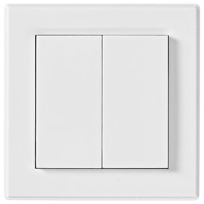 Chytrý vypínač se dvěma tlačítky pro dálkové ovládání světelných zdrojů a dalších zařízení. Pro jeden kanál je možné zaregistrovat více přijímačů, což umožňuje zapínat a vypínat několik zařízení stisknutím jednoho tlačítka. Funguje téměř se všemi stávajícími systémy s frekvencí 433,92 MHz bez ohledu na značku.