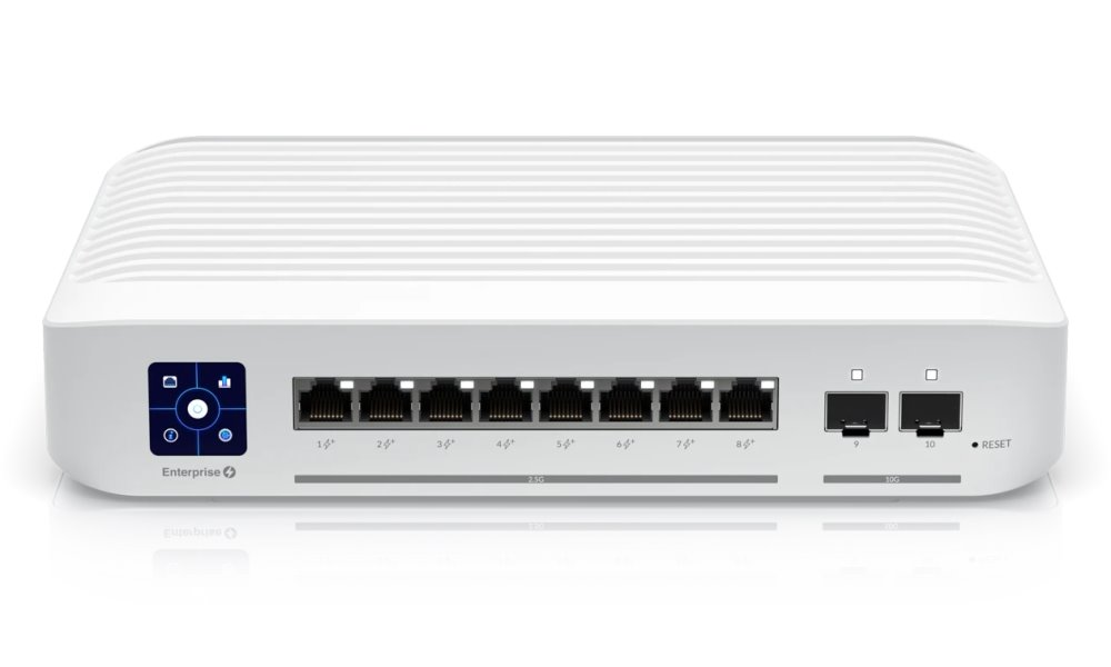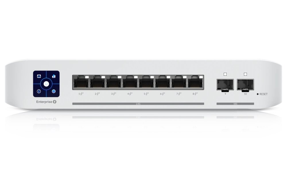 UniFi Switch Enterprise 8 PoE je spolehlivý switch s managementem v desktop provedení. Jedné se o konfigurovatelný výkonný L3 přepínač s kapacitou 80 Gbps, rychlostí směrování 59,52 Mpps a 1,3" dotykovým displejem.