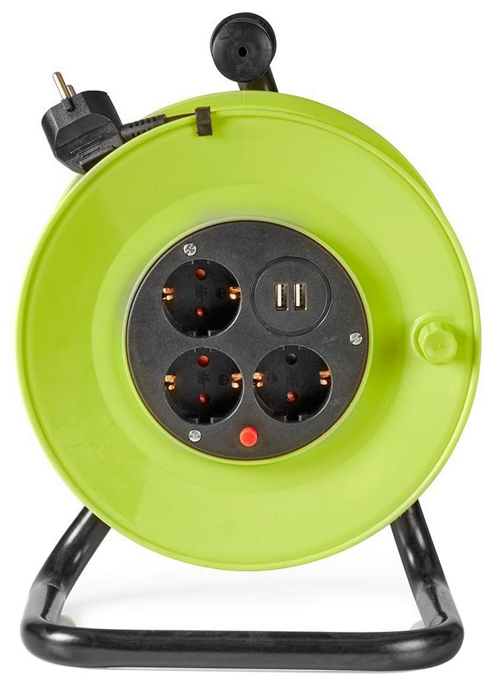 Kabelový buben nabízející 3 zásuvky a 2 USB porty s kombinovaným výkonem 12 W (2,4 A) pro nabíjení vašich mobilních zařízení. Vysoce kvalitní kabel (3x 1,5 mm2) o délce 25 metrů umožňuje větší flexibilitu při práci s elektrickými zařízeními doma nebo venku. Kabelový buben je maximálně bezpečný díky tepelné elektrické pojistce a zásuvkám zabraňujícím manipulaci dětmi. Maximální zátěž při plném odmotání činí až 3680 W.