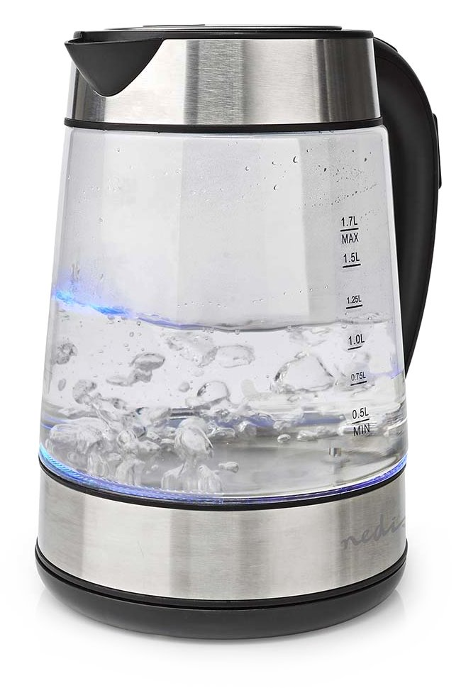 Stylová rychlovarná konvice s nerezovými prvky o objemu 1,7 litru. Skryté topné těleso s výkonem 2200 W minimalizuje usazování vodního kamene a v kombinaci s vyjímatelným filtrem zajišťuje velmi snadné čištění konvice. Modrá LED kontrolka signalizuje, když se konvice používá, a skleněná nádoba umožňuje přímo sledovat, kdy se voda vaří. Mezi další přednosti patří otočná 360° základna, 5 stupňů nastavení teploty a ochrana zamezující zapnutí konvice, ve které není dostatek vody.