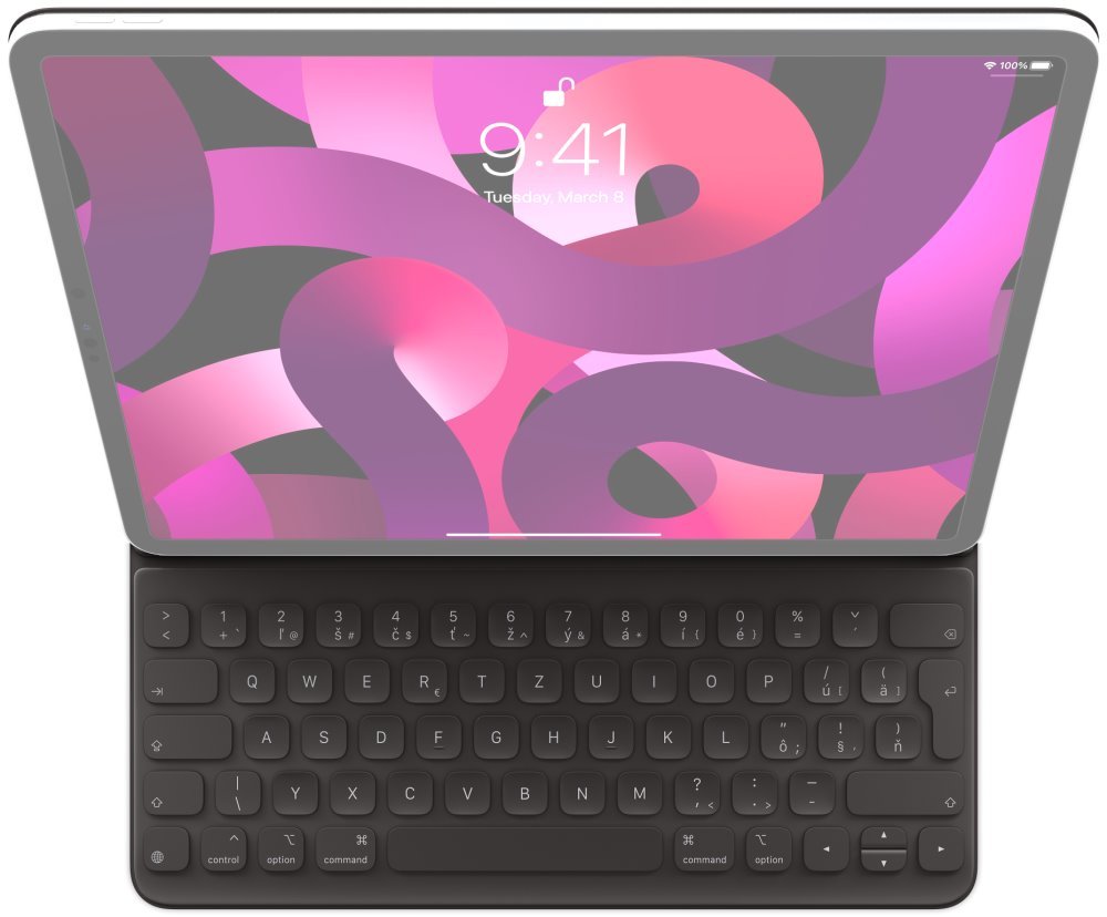 Smart Keyboard Folio představuje špičkovou klávesnici pro iPad Pro nebo iPad Air, která vám umožní komfortní práci na cestách a současně slouží jako ochranné pouzdro při přenášení. Díky konstrukci toto pouzdro s klávesnicí Apple můžete polohovat v různých úhlech a pohodlně pracovat nebo sledovat multimédia. Rychlé připojení bez nutnosti párování vám umožní okamžitě začít pracovat.