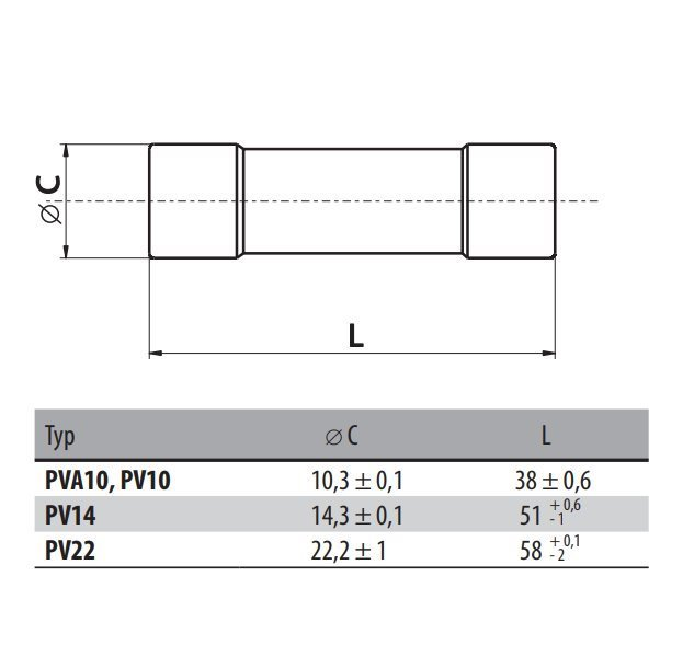 Válcová pojistka (výkonová pojistková vložka) pro pojistkový odpínač typu OPVP14.