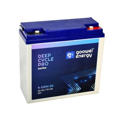 Záložní 12 V, 24 Ah olověný akumulátor v provedení VRLA (GEL) vhodný pro aplikace, kde dochází k častému a hlubokému vybíjení / cyklování, tedy hlavně pro pohony elektromotorů.