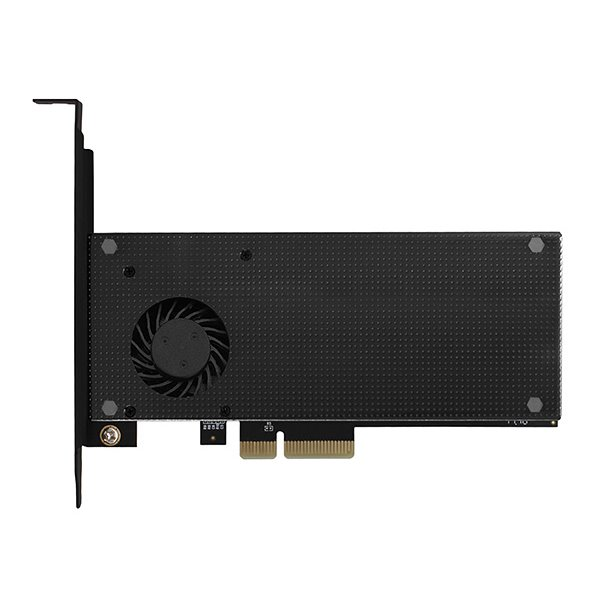 Řadič do slotu PCIe x4 pro připojení dvou M.2 disků do velikosti až 110 mm. Adaptér je napájen přímo z PCIe sběrnice, není nutné externí napájení.
