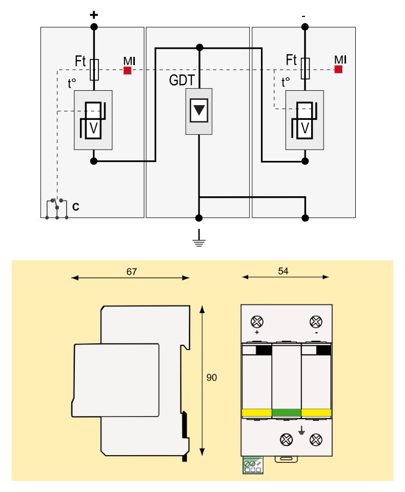 Svodiče přepětí obsahují vysokovýkonný varistor a plynem plněné jiskřiště v tzv. zapojení do Y. Tato speciální kombinace umožňuje bezchybné měření izolačního odporu, neboť nevzniká žádný propustný proud.