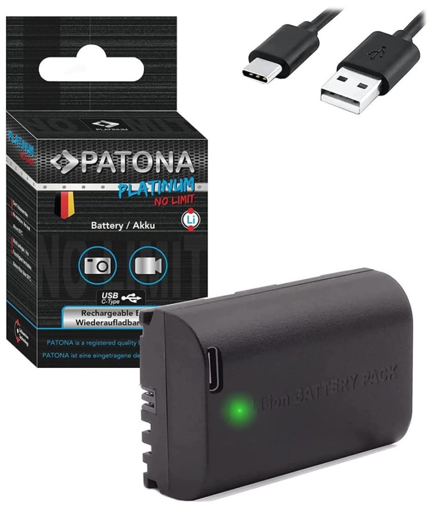 Kompatibilní baterie pro fotoaparáty Canon. Baterie se vyznačují vysokou kvalitou, mají integrovanou ochranu proti přetížení, přebití a přehřívání. Nabíjení baterie je realizováno skrze zabudovaný konektor USB-C. Lze ji nabíjet připojením kabelu do USB-C konektoru (např. z počítače, powerbanky či nabíječkou na mobilní telefon) tak i v klasické nabíječce na Li-ion. Nabíjecí proud max. 4 A (vyšší vstupní proudy jsou automaticky redukovány pomocí IC ovládání baterie).