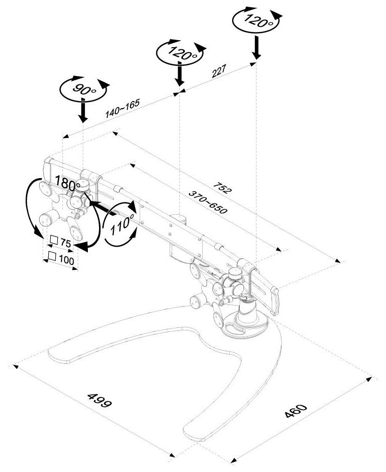 Flexibilní VESA stojan pro 2 ploché LCD monitory o velikosti 10" až 24" a maximální nosnosti do 14 kg (2× 7 kg). Univerzální technologie naklápění, otáčení a rotace umožňuje optimální nastavení. Veškerý instalační materiál je součástí výrobku.