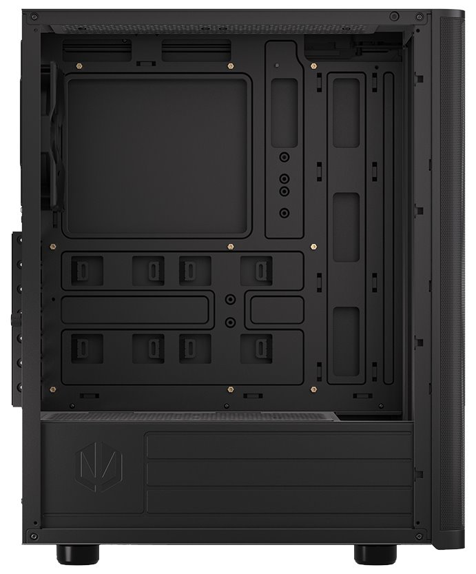 Skříň formátu Middle Tower nabízí dvě 2,5" pozice pro SSD disky a jednu 3,5" pozici pro pevný disk. Na horní části se nachází dva USB 3.0 porty, sluchátkový výstup a audio vstup pro mikrofon. Vybavena je jedním 120 mm ventilátorem, který spolu s perforovaným čelním panelem zajišťuje dostatečné proudění vzduchu. Důmyslné řešení umožňuje pohodlné umístění až 360 mm dlouhého výměníku vodního chlazení na přední straně. Ve skříni je dostatek prostoru pro chladič CPU do výšky až 161 mm a grafickou kartu o délce až 315 mm. Dodávána je bez zdroje. Součástí je také sada prachových filtrů.