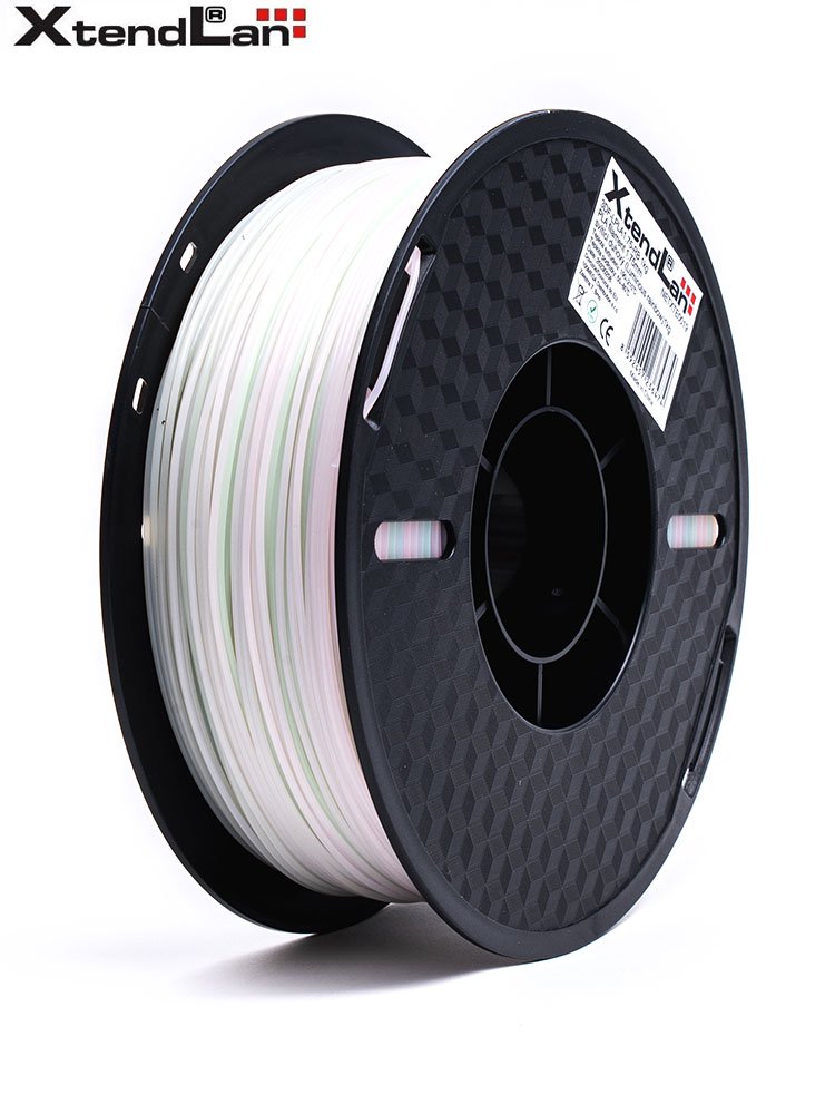 Plastové vlákno (filament) pro 3D tisk, v návinu na cívce. PLA (PoLylactic Acid, kyselina polymléčná) je nejpopulárnější 3D tiskový materiál. Především se při jeho tisku neuvolňuje nepříjemný zápach a není problémem tisk na neohřívanou podložku. Je rozměrově stabilní s velmi malým tepelným smrštěním a je vhodný pro tisk i velkých objektů. Jde o biologicky odbouratelný materiál. Není vhodný do vlhkého prostředí. Při 3D tisku má velmi vhodnou přilnavost k podložce - nepotřebuje, aby podložka byla ohřívána a zároveň lze výrobek snadno z podložky sejmout. Vytištěný předmět lze ručně brousit a lakovat. Filament je chráněný vakuovým balením a v každém balení je přítomen vysoušecí sáček, který zabraňuje případnému působení vlhkosti na materiál. Dodáváno v kartónovém obalu s okénkem pro kontrolu barevnosti.