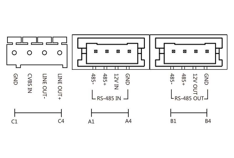 Rozhraní: 1x vstup (RS-485), 1x výstup (RS-485), 1x debug port, 1x microSD slot (rezervováno), 1x video & audio rozhraní (rezervováno)