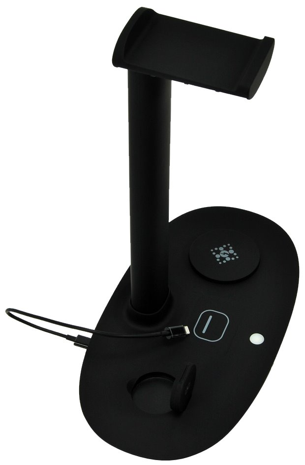 Praktická bezdrátová nabíječka nabízí tři nabíjecí plochy a odkládací stojan na sluchátka. Je vybavena chytrým čipem, který efektivně řídí nabíjení mobilního telefonu, chytrých hodinek a bezdrátových sluchátek. Disponuje rychlým bezdrátovým nabíjením o výkonu až 15 W pro chytrý telefon, 3 W pro sluchátka a 2 W pro chytré hodinky. Nabíječka je vhodná především pro produkty Apple iPhone, AirPods a iWatch, ale je kompatibilní i se všemi zařízeními, které podporují standard bezdrátového připojení Qi. Také sluchátka na stojanu lze dobíjet, a to drátově pomocí konektoru USB-C s výstupním výkonem 5 W.