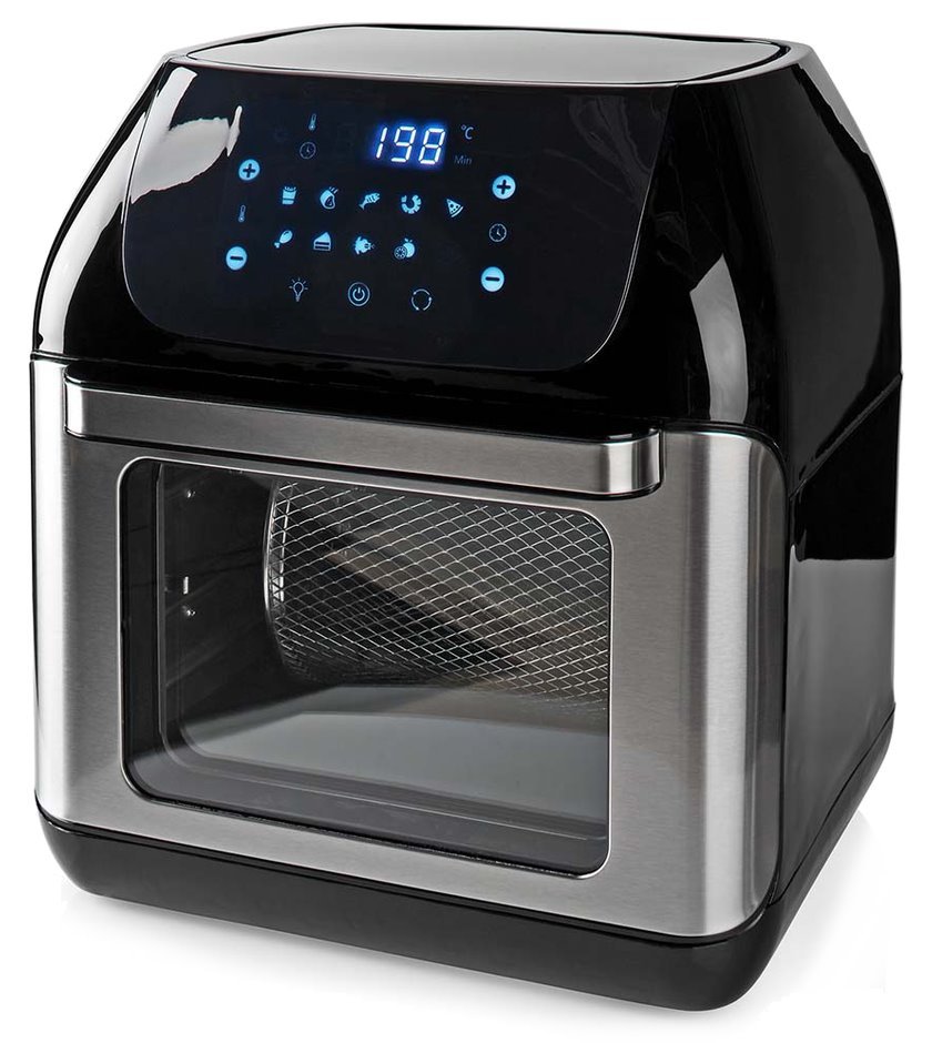 Díky objemu vnitřního prostoru 12 litrů pojme trouba/fritéza Nedis KAAFO300EBK velké množství potravin nebo rozměrná jídla, jako je pizza, koláč apod. Speciálně pro hranolky je k dispozici praktický košík, díky kterému budou hranolky opečené dozlatova rovnoměrně a ze všech stran bez námahy. Všestranné použití podporuje rovněž digitální displej v přední části, na kterém rychle a jednoduše nastavíte jeden z 9 programů vaření a máte vystaráno.