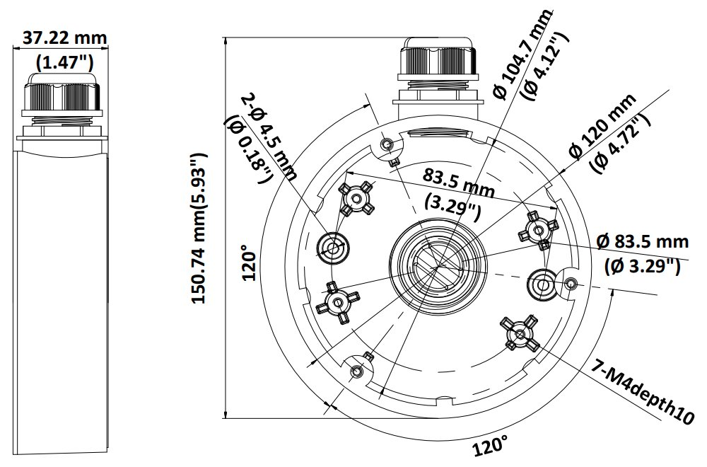 Instalační krabice pro dome kamery Hikvision série D7xx. Krabice je vhodná pro vnitřní i venkovní použití. Zeď musí unést více než 3krát větší hmotnost, než je celková hmotnost kamery a držáku.