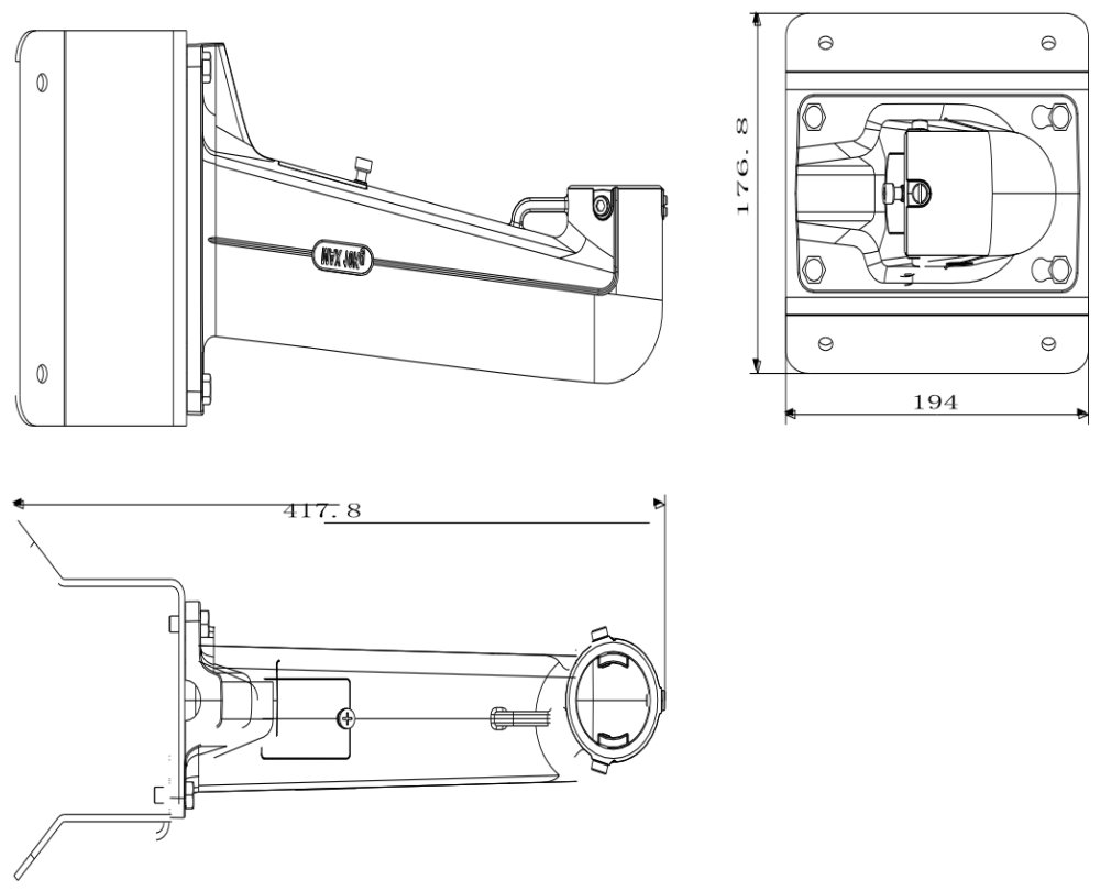 Rohový držák pro speed dome kamery Hikvision. Zeď musí unést více než 3krát větší hmotnost, než je celková hmotnost kamery a držáku.