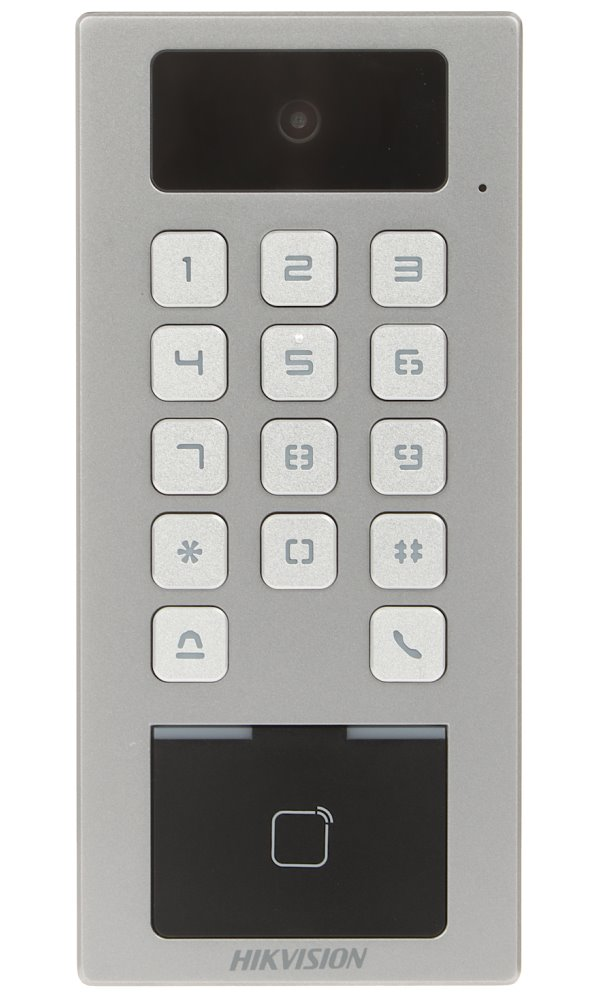 Elegantní IP dveřní interkom s klávesnicí a čtečkou karet/čipů s technologií Mifare (13,56 MHz). Z další výbavy je k dispozici 2 Mpx kamera a slot pro SD kartu s kapacitou až 256 GB. Připojení je realizováno klasicky skrze RJ-45 s rychlostí 10/100 Mbps + podpora SIP nebo pomocí Wi-Fi připojení. Jednotka je vhodná i pro venkovní využití díky krytí dle IP65 + antivandal odolnosti dle IK09.