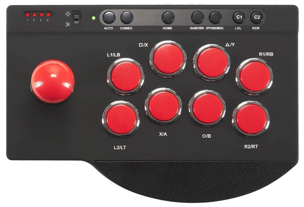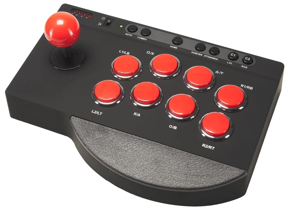 Herní ovladač Arcade Stick je dokonalou volbou pro milovníky bojových her. Disponuje osmi akčními tlačítky s listovými spínači, které nabízejí odolnost i citlivost. Dále je vybaven funkcí Auto pro rychlé opakované údery a funkcí Combo pro naprogramované speciální údery a pohyby. Nechybí ani robustní ocelový joystick s mikrospínačovými kontakty. Povrchová úprava „soft touch“ a pogumovaná opěrka zápěstí zajistí optimální herní pohodlí. Silné přísavky a 3m kabel přináší velkou volnost při instalaci.