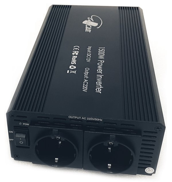 Měnič napětí je vybaven 2 zásuvkami Schuko. Ideální řešení pro napájení nejrůznějších elektrických spotřebičů určených pro síťové napájení.