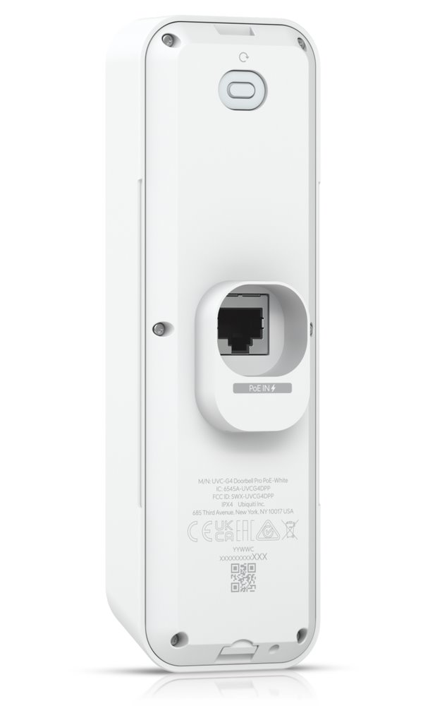 UniFi Protect G4 Doorbell Pro je PoE video zvonek vybavený primární 5Mpx kamerou a sekundární 8Mpx kamerou (např. pro prohlížení zásilek). Dále je pak vybaven vestavěným programovatelným LCM displejem, LED světlem, obousměrnou zvukovou komunikací a čtečkou otisku prstů a NFC karet.
