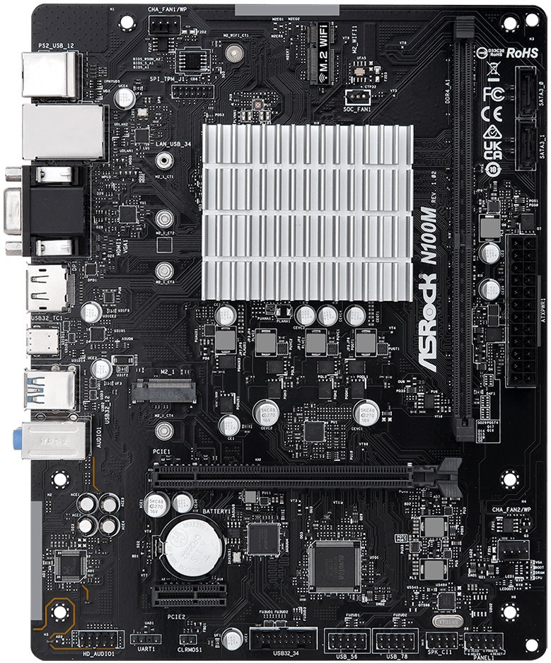 Základní deska ASRock N100M, která využívá plný výkon procesoru Intel N100 a moderní mikroarchitekturu CPU. Disponuje jedním slotem pro operační paměť DDR4 s podporou až 32 GB, díky čemuž představuje ideální volbu pro cenově dostupný PC systém, určený pro základní výpočty a firemní provoz. Disponuje trojicí grafických výstupů, které zahrnují nejpoužívanější rozhraní pro připojení ke zdroji obrazu, konkrétně HDMI, DisplayPort a VGA.