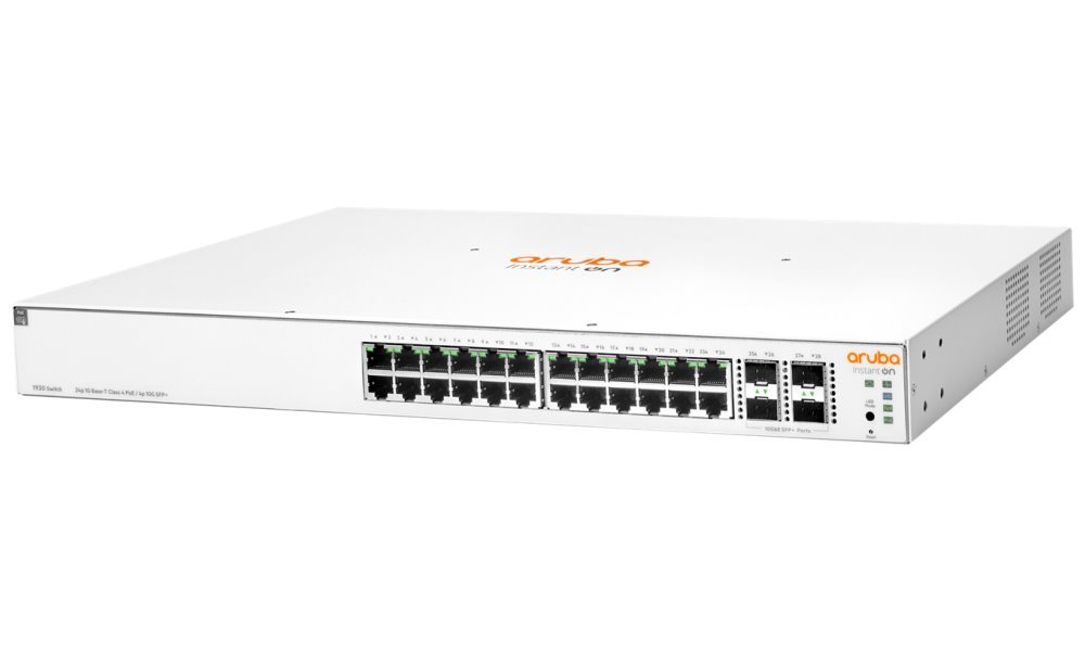 Spravovatelný PoE+ switch nabízející 24× 10/100/1000 Mbps RJ-45 portů s PoE+ (802.3af/at) a 4× 1/10 GbE SFP+ porty. Přepínací kapacita switche je 128 Gbps a rychlost směrování činí 95,23 Mpps. Mezi hlavní přednosti patří snadná tvorba oddělených VLAN, QoS nebo IGMP Snooping. Malým organizacím, které si chtějí svou infrastrukturu řídit samy, nabízí řada Aruba 1930 uživatelsky přívětivé webové rozhraní či mobilní aplikaci pro snadnou konfiguraci a správu.