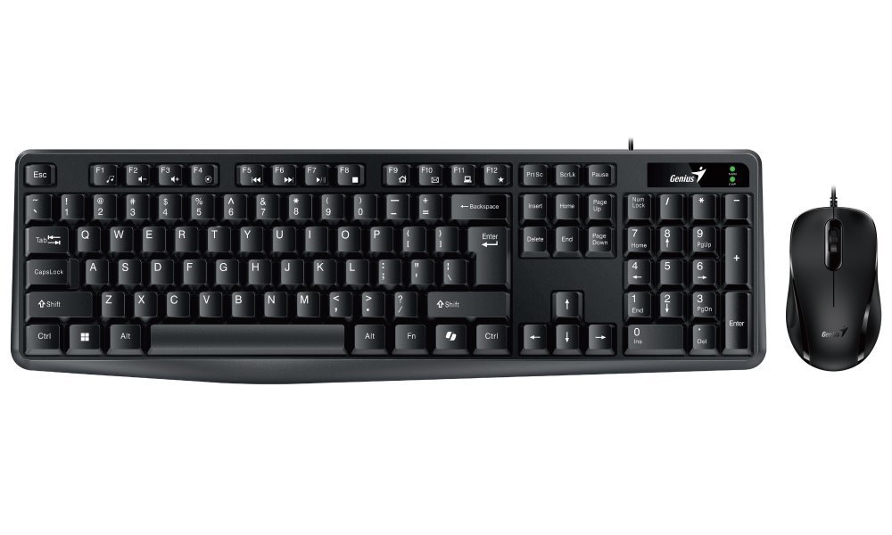GENIUS KM-170 představuje sadu klávesnice a myši pro každodenní činnost na PC, ať už pracujete u kancelářského stolu nebo v pohodlí domova. Klávesnice Genius je vybavena četnými funkčními klávesami, které zefektivní ovládání hudebního přehrávače, prohlížení sociálních sítí nebo práci s běžnými kancelářskými programy. Samozřejmostí je také přítomnost numerického bloku pro snadné a rychlé zadávání číselných znaků. Myš Genius disponuje optickým senzorem s rozlišením 1000 dpi, díky čemuž plynule a přesně reaguje na každý pohyb a podpoří komfortní činnost s dokumenty, tabulkami, prohlížení internetových stránek, webů apod.
