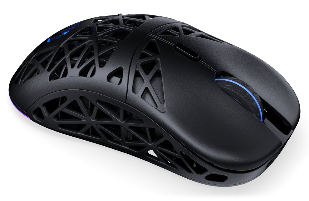 Ultra lehká bezdrátová herní myš disponující 6 programovatelnými tlačítky a vysoce přesným optickým senzorem Pixart PAW3395 s nastavitelným rozlišením až 26 000 DPI. Herní design doplňuje adresovatelné RGB podsvícení. Kvalitní spínače Kailh GM 8.0 vydrží více než 80 milionů kliků. Napájení zajišťuje vestavěná dobíjecí baterie s kapacitou 500 mAh. Myš lze jednoduše nabíjet pomocí dokovací stanice. Připojení lze jednoduše realizovat skrze USB kabel, technologii 2,4 GHz a miniaturní USB přijímač nebo pomocí Bluetooth.