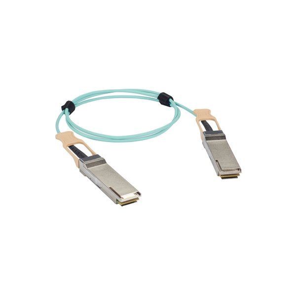 Aktivní optický kabel (AOC) s konektory QSFP28 a délkou 2 m. Slouží k propojení aktivních prvků uvnitř datových center a oproti DAC kabelu k přenosu využívá optické vlákno, což výrazně prodlužuje jeho dosah. Maximální propustnost činí 100 Gbps.