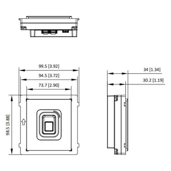 Bezkontaktní čtečka otisku prstů a M1/Desfire karet. Určena pro modulární dveřní stanice Hikvision.