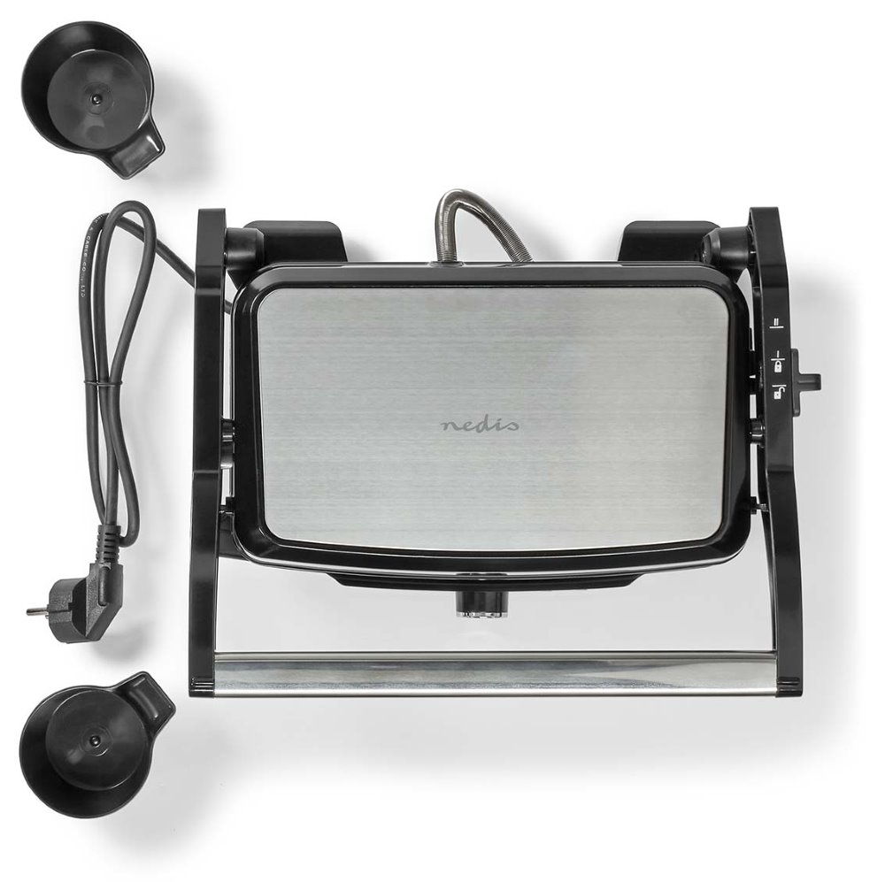 Samozřejmostí je také rozložitelný design, který vám umožní opékat na maximální ploše jako na stolním grilu. Pečicí desky grilu Nedis KAGR131FSR se vyznačují nepřilnavým povrchem, na kterém se zbytky jen tak nepřichytí a snadno se čistí. Přebytečný olej a tuk se shromažďuje v odkapávacích nádobkách, které lze umýt v myčce. Samozřejmostí je přítomnost rukojeti pro bezpečnou manipulaci a protiskluzových nožiček, které usadí gril na místě.